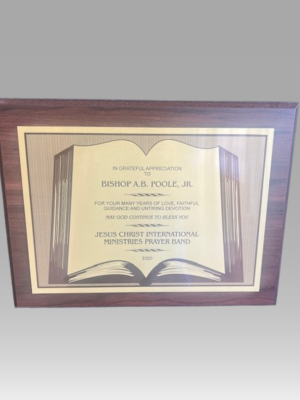 Walnut Finished Plaque Board with Printed Purple Bible. 2 sizes to choose from.