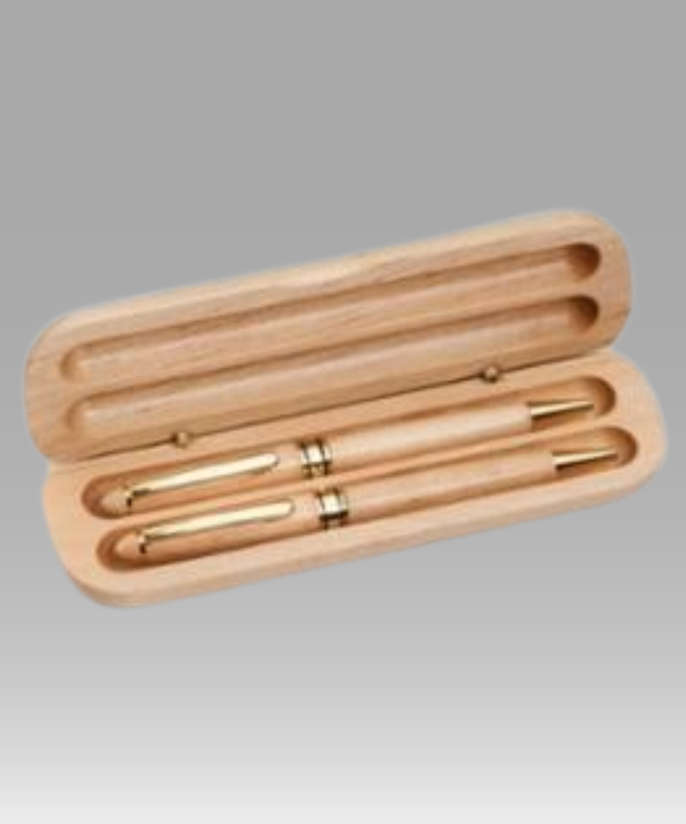 Birch Wood Pen & Pencil Set w/Case. Engraving done on front case as well as personalized on each cap. Free Engraving