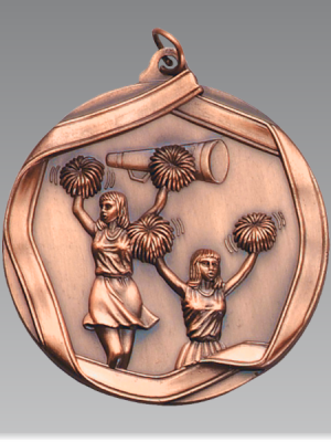 2.25″ DIECAST CHEERLEADING MEDAL. AVAILABLE IN GOLD, SILVER OR BRONZE. NECK RIBBON INCLUDED