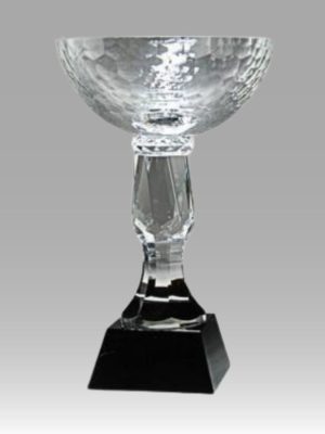 An Elegant Faceted Clear Crystal Oval Award On Black Base Including Deluxe Velour Lined Presentation Box