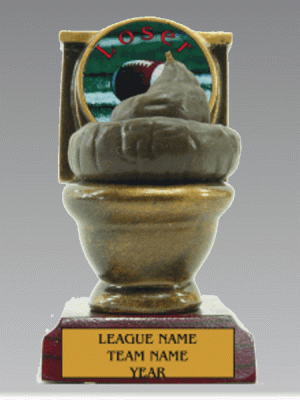 LAST PLACE TURD TOILET BOWL TROPHY. FREE ENGRAVING