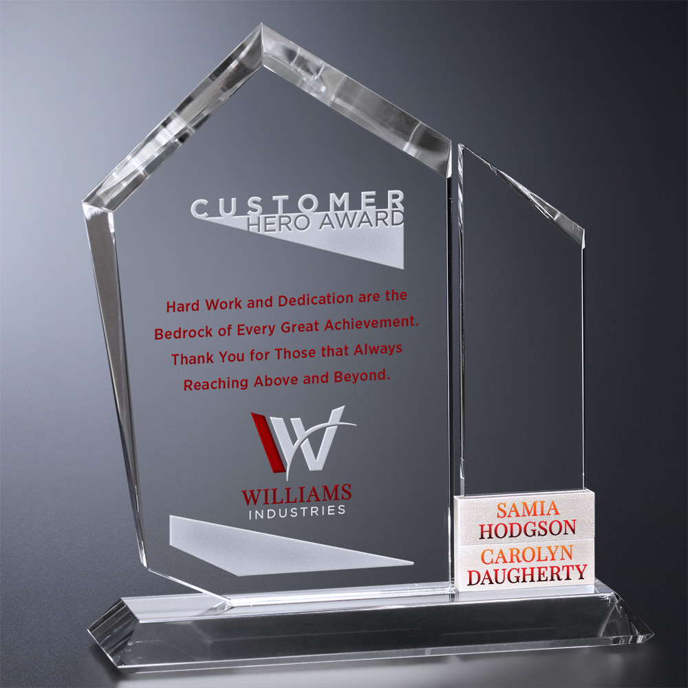 Sleek metal blocks hug the slim panel of the Mainz Goal-Setter. This striking goal-setter award is the perfect option to reward customer service goals, hall of fame membership, and safety miles driven.