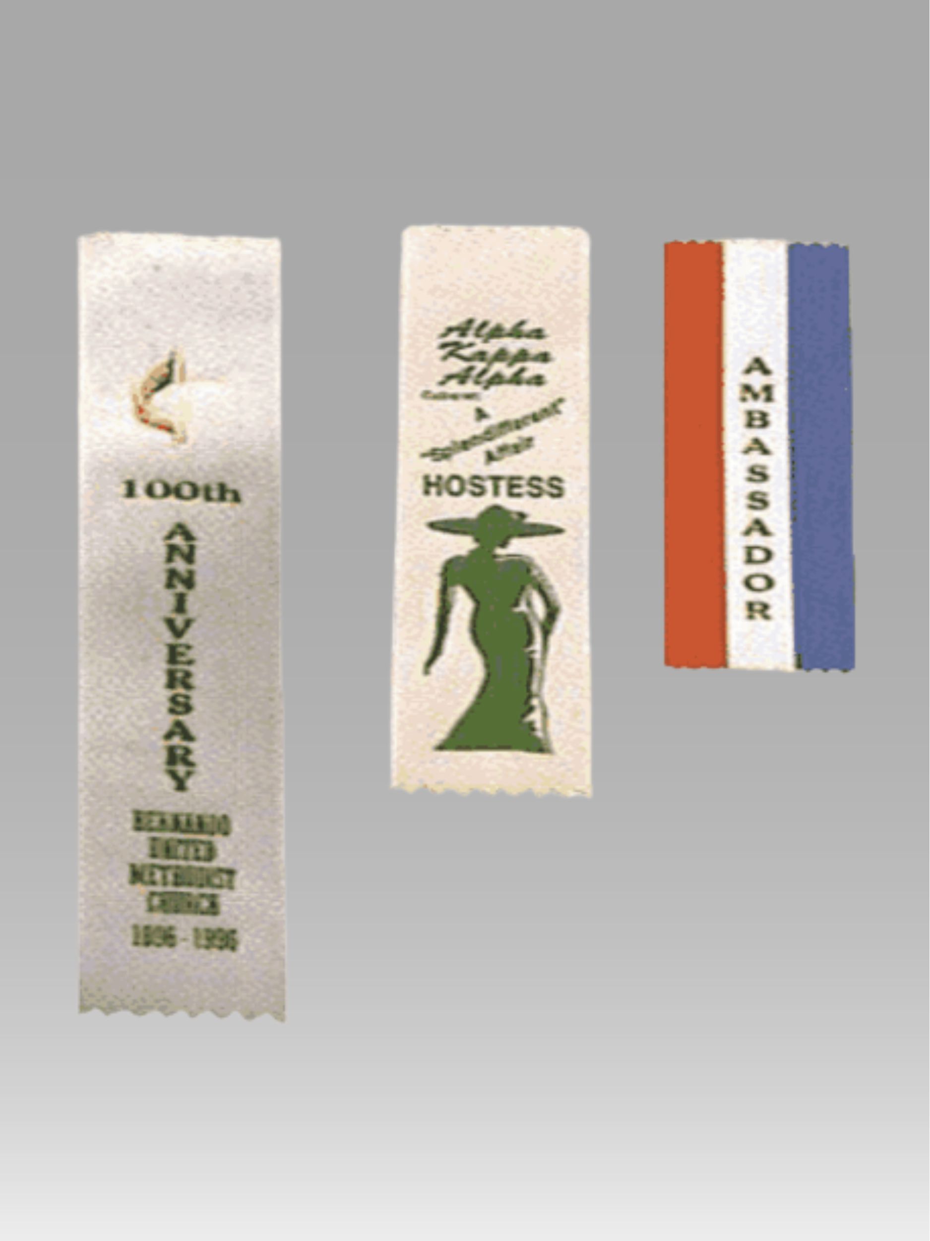 ALL RIBBONS ARE STAMPED IN GOLD FOIL IMPRINT. OTHER IMPRINT COLORS ARE AVAILABLE AT AN ADDITIONAL COST OF $8.00 PER FOIL COLOR CHANGE