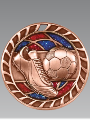 2.5″ DIE CAST SOCCER GLITTER MEDAL. AVAILABLE IN GOLD, SILVER OR BRONZE. NECK RIBBON INCLUDED
