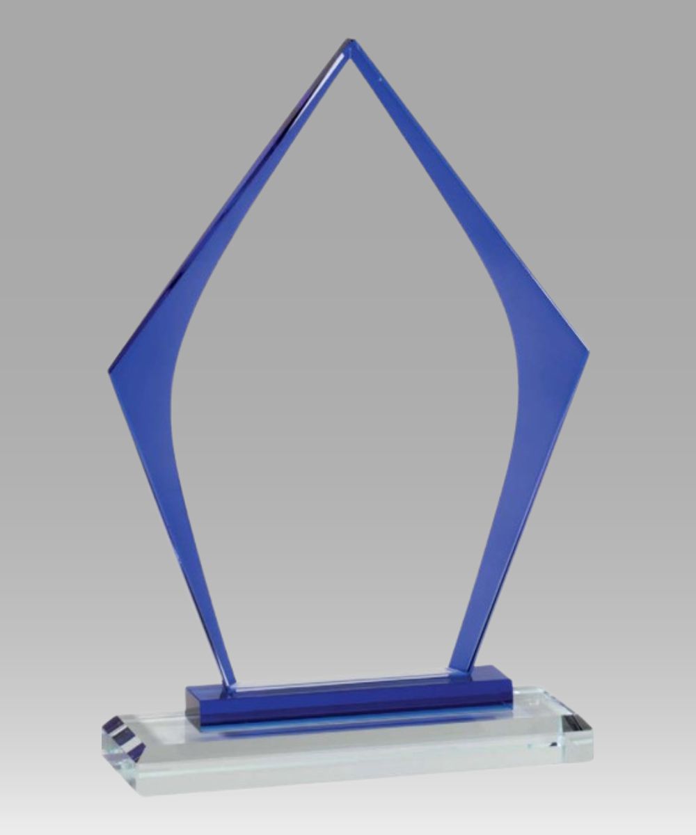 This 9 inch Ascendant Blue Crystal Award showcases a striking open-center design framed by rich blue crystal accents and clean, angular lines. Mounted on a solid crystal base, it offers both stability and visual impact. The clear center provides ample space for precision engraving, allowing text and logos to stand out elegantly. Its upward, sculptural form symbolizes growth, leadership, and achievement, making it an exceptional choice for recognizing excellence, service milestones, or outstanding performance. If adding a logo, please provide a black-and-white vector file.