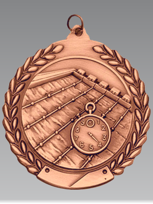 2.75″ Die Cast Swimming Wreath Medal. Available in Gold, Silver, Bronze. Neck Ribbon Included